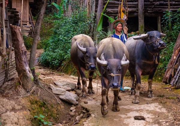 Lever de soleil tout en profitant de l’air pur du matin… Après le petit-déjeuner, vous prenez la route en « motor » (sorte de moto taxi) en direction du village de Khanh Thien. Des arrêts sont prévus pour profiter de beaux panoramas et prendre des photos, le chemin en montagne est simplement magnifique… Vers midi, vous atteignez le village de Khanh Thien où vous passerez trois nuits. Après le déjeuner proposé par vos hôtes, à vélo, découverte tranquille du village blotti au milieu des rizières.